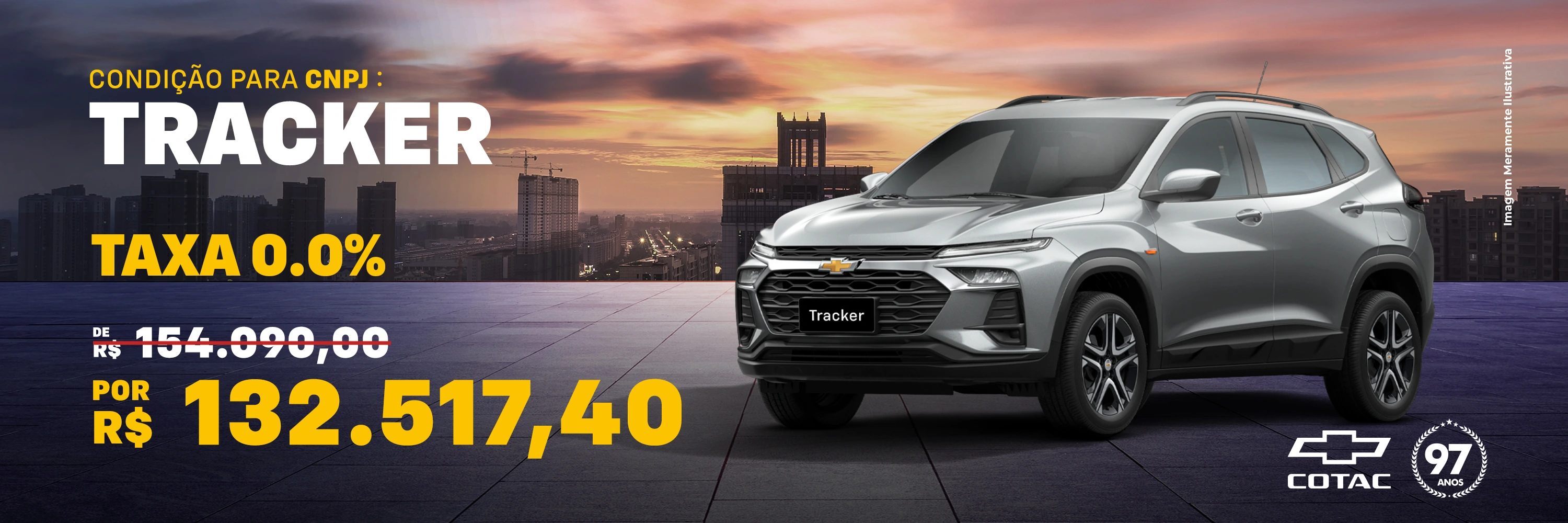 O valor refere-se ao veículo Chevrolet Tracker LT – 1.0 Turbo – Ano/Modelo 2025/2026 (conf. 5B76DT) , zero km, pacote R8D( pintura Azul Boreal). Preço Público de R$ 154.090,00 desconto de R$ 21.572,60 (14%) e valor final de R$ 132.517,40. Valor para forma de pagamento: à vista ou financiamento sujeito aprovação.Desconto válido para faturamento até 30/09/2025.Condições válidas exclusivamente para veículos novos (0 km). Consulte veículos elegíveis aos descontos, validade dos descontos, planos de financiamento, condições e taxas diferenciadas diretamente na concessionária com o departamento de Vendas Diretas. Modalidade de Venda:Faturamento direto da fábrica. O desconto é exclusivo para empresas com CNPJ ativo na Receita Federal. Os descontos mencionados não são acumulativos com qualquer outro tipo de condição e/ ou promo& ccedil;ão especial anunciados. As taxas podem variar de acordo com o perfil de crédito do cliente, sendo 60% de Entrada e saldo em 24x com Taxa especial de 0.0%, IOF e Taxa de abertura de credito serão acrescidos na operação. Sujeito à disponibilidade em estoque da fabricante. Imagem meramente ilustrativa. Reservamo-nos o direito de corrigir eventuais erros de imagem ou digitação.